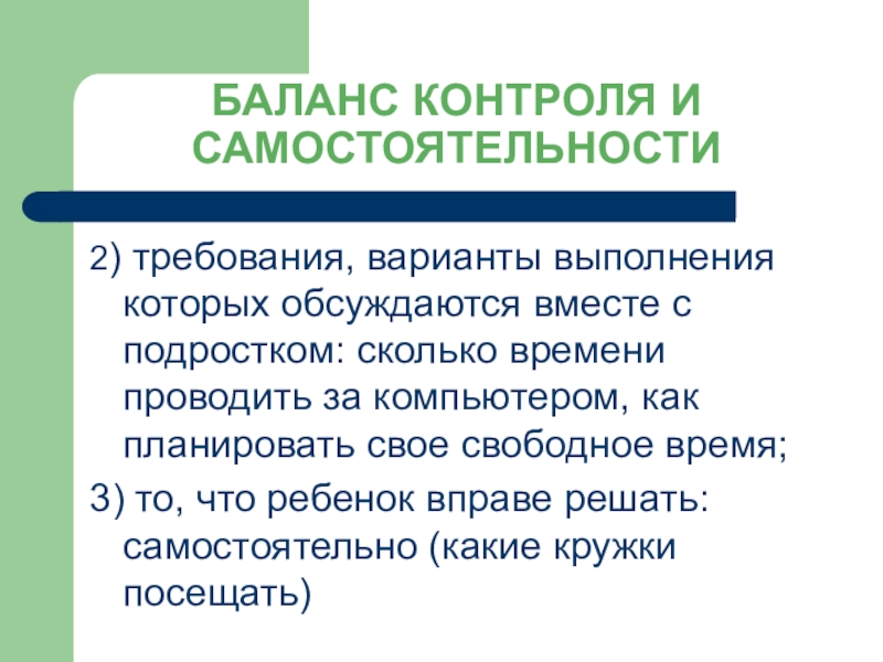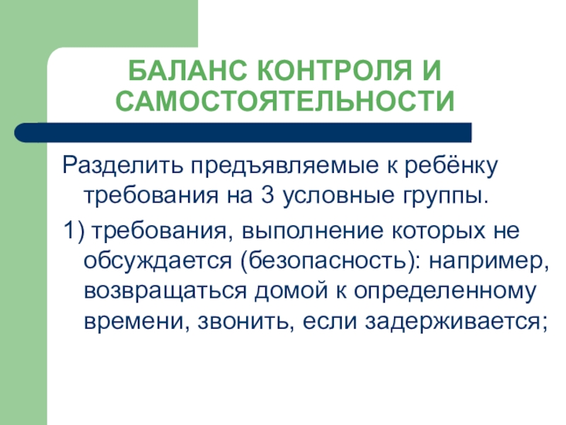 Слайд 25БАЛАНС КОНТРОЛЯ И САМОСТОЯТЕЛЬНОСТИ