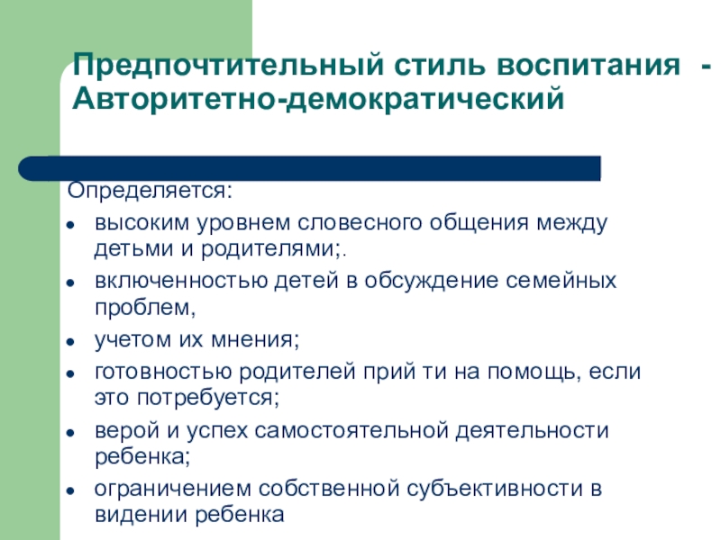 Слайд 23Предпочтительный стиль воспитания - Авторитетно-демократический
