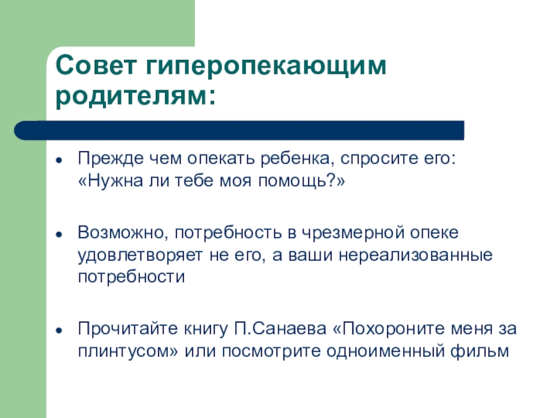 Слайд 13Гиперопека – сверх, -чрезмерная опека