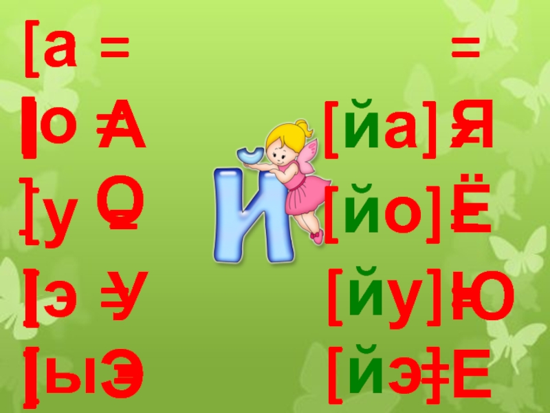 [а] [йа] [йо] [йу] [и] [йэ][у][о][э][ы]=А=О=Э=У=И=Ы=Я=Ё=Ю=Е