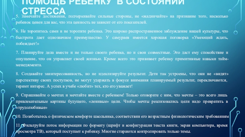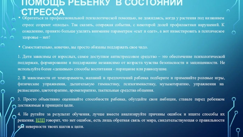 Анализ текстов, решение задач, переработка информации, принятие решений – все это суть информационной нагрузки, которая превосходит возможности человека. Ситуация осложняется высокой заинтересованностью ученика в отличном результате работы. Формируются информационные перегрузки, которые приводят к информационному стрессу.