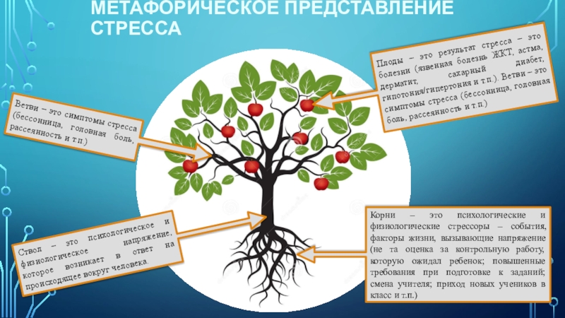 Ветви – это симптомы стресса (бессонница, головная боль, рассеянность и т.п.)