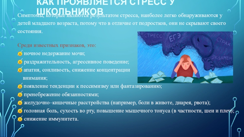 Трудности в общении, взаимопонимании и взаимодействии с одноклассниками и учителями порождают коммуникативный стресс.