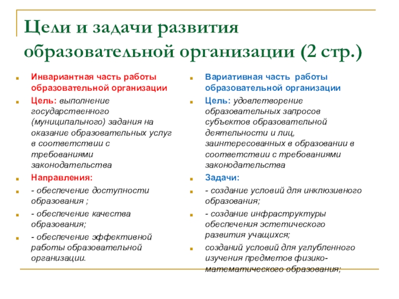 Цель: удовлетворение образовательных запросов субъектов образовательной деятельности и лиц, заинтересованных в образовании в соответствии с требованиями законодательства
