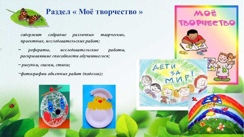Ученики младших классов при оформлении портфолио не смогут обойтись без помощи родителей. Их помощь должна заключатся в постоянном побуждении ребенка проявлять инициативу и самостоятельность в заполнении данных. Таким образом, он сможет производить оценку своих достижений и возможностей, формировать личное отношение к полученным результатам. Портфолио помогает ребенку развивать уравновешенный взгляд на себя, свои достоинства и на свои цели.