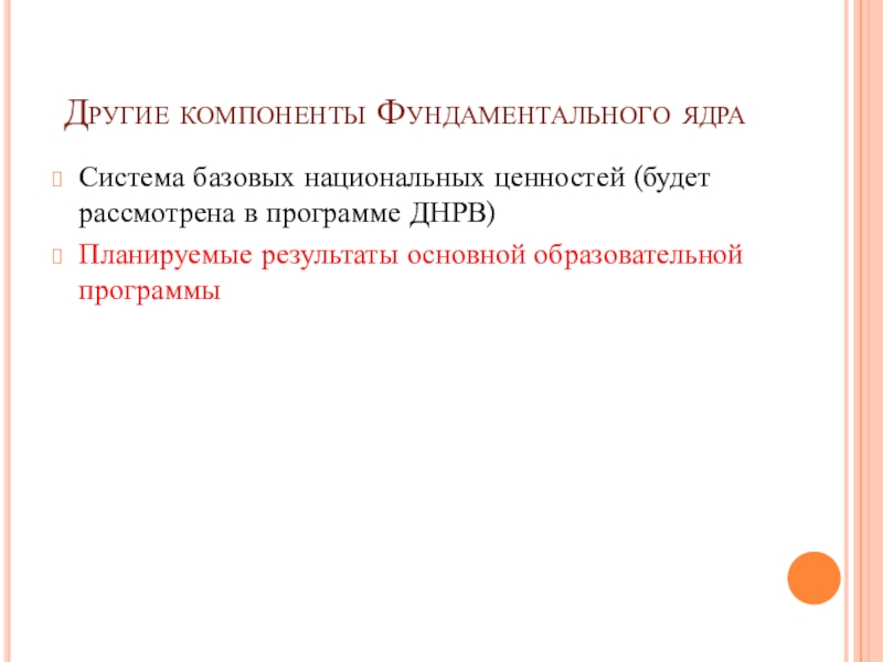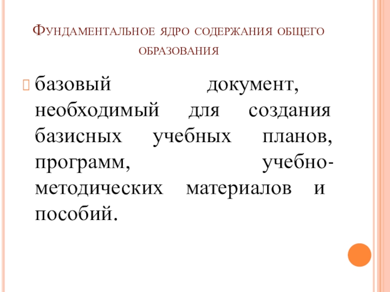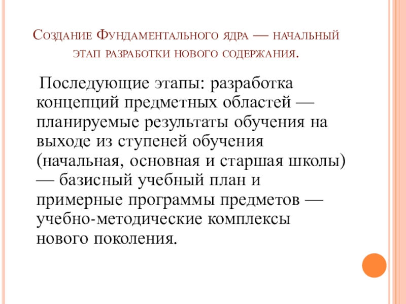 Слайд 13Создание Фундаментального ядра — начальный этап разработки нового содержания.