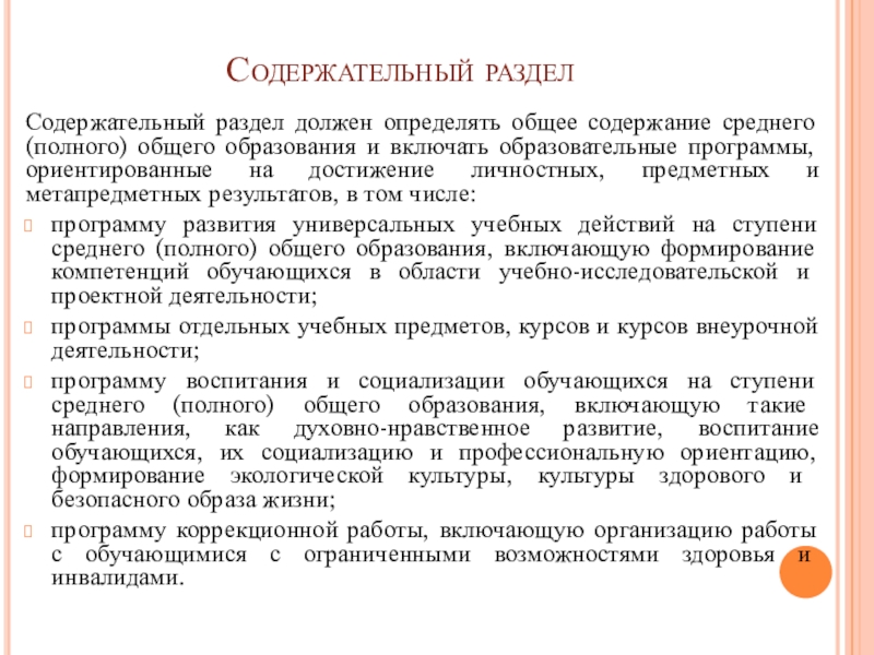 Содержательный раздел должен определять общее содержание среднего (полного) общего образования