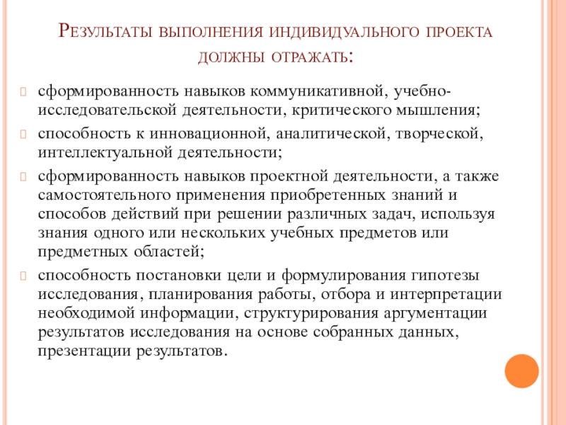 Слайд 23Результаты выполнения индивидуального проекта должны отражать: