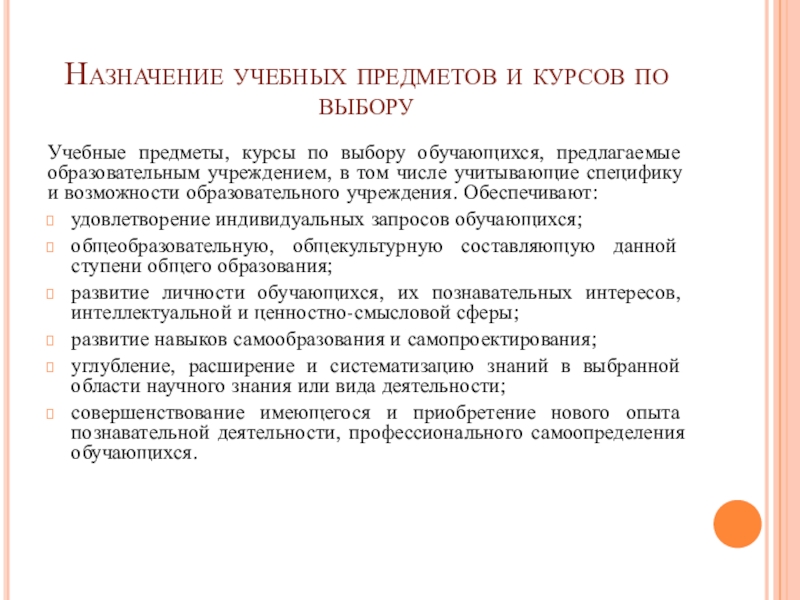 Слайд 20Назначение учебных предметов и курсов по выбору