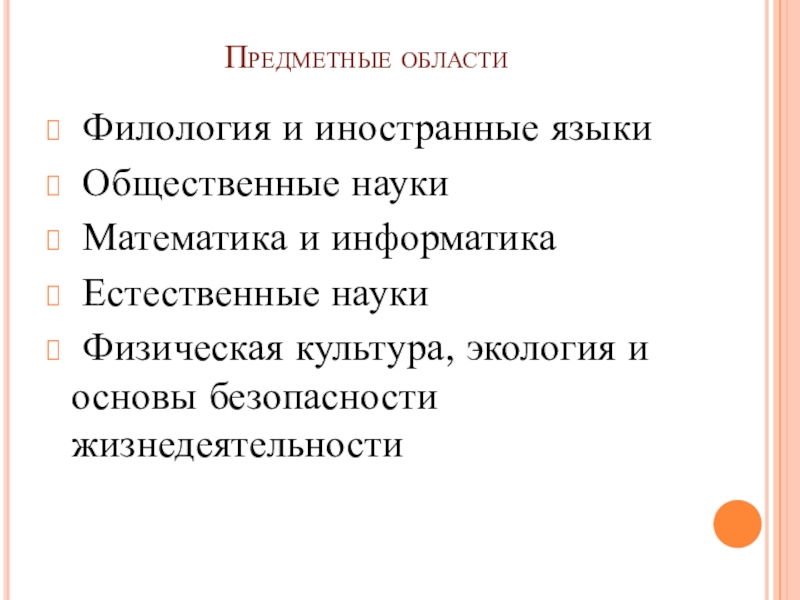 3) описание в лаконичной форме областей знаний, представленных в современной школе, но не конкретных предметов.