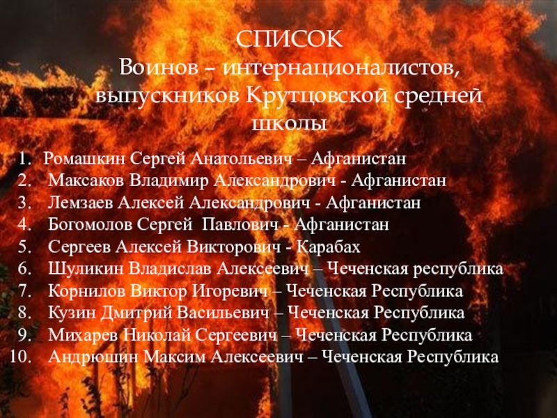 Воины – интернационалисты, выпускники Крутцовской средней школы
