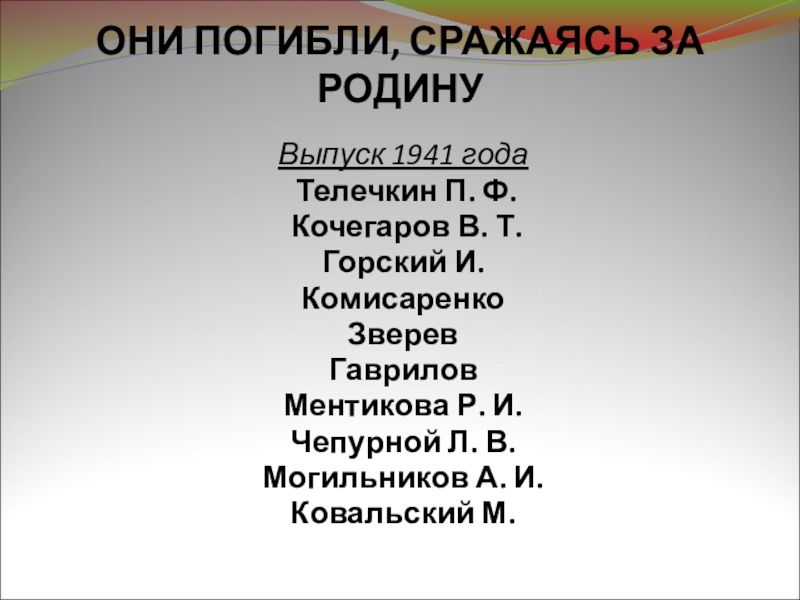 ОНИ ПОГИБЛИ, СРАЖАЯСЬ ЗА РОДИНУ