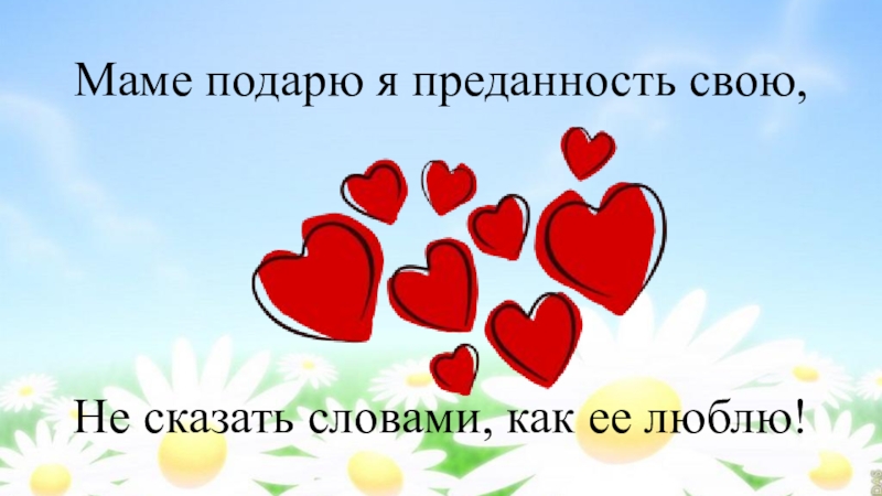 Маме подарю я преданность свою,Не сказать словами, как ее люблю!