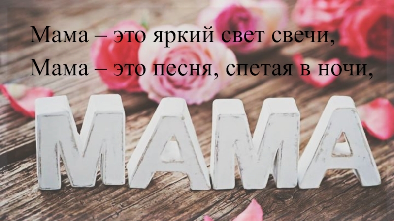 Мама – это яркий свет свечи,Мама – это песня, спетая в ночи,