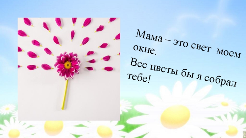 Мама – это свет моем окне.Все цветы бы я собрал тебе!