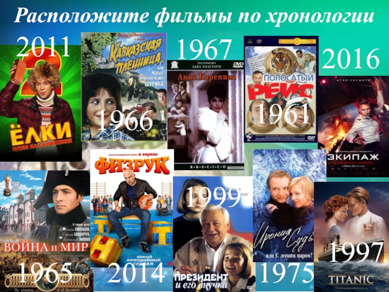 Расположите фильмы по хронологии2011196619671965201619611997197519992014