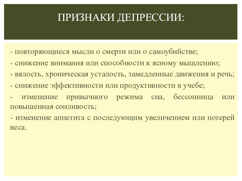 Признаки депрессии: