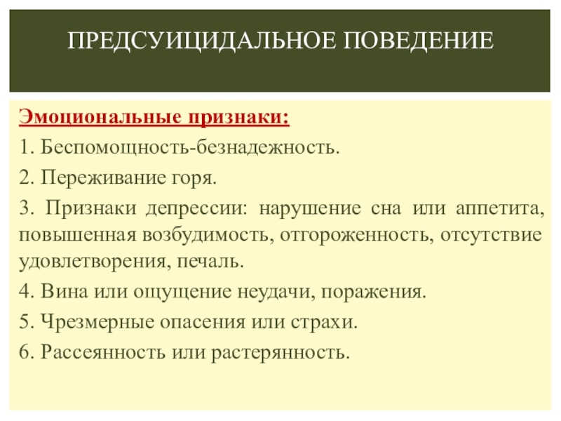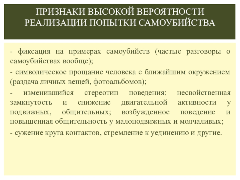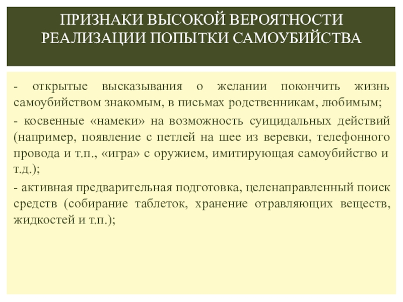 Признаки высокой вероятности реализации попытки самоубийства