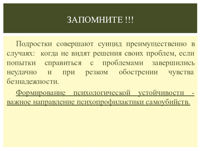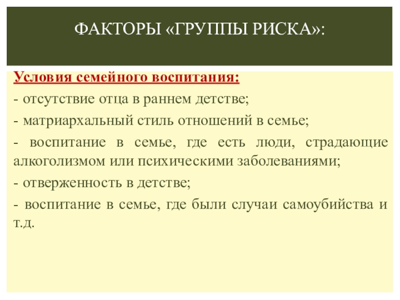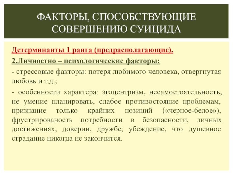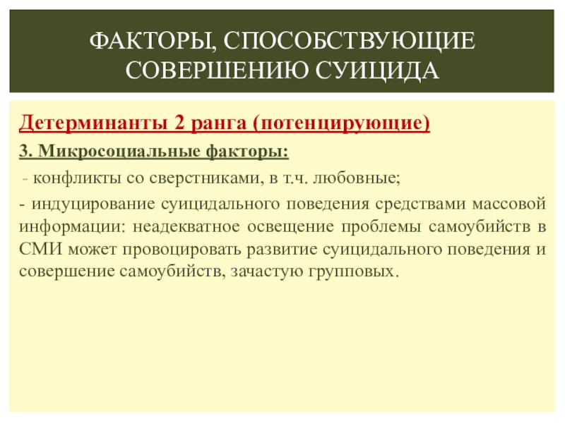 Факторы, способствующие совершению суицида