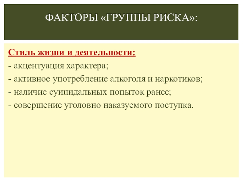 Факторы «Группы риска»: