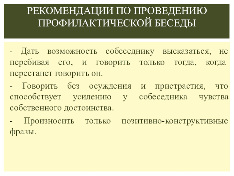 Рекомендации по проведению профилактической беседы