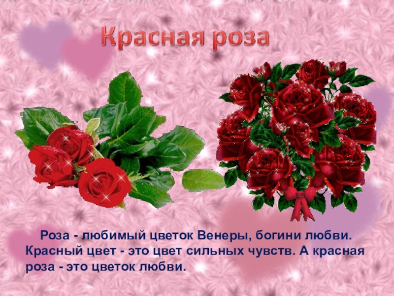 Слайд 16 Роза - любимый цветок Венеры, богини любви. Красный цвет