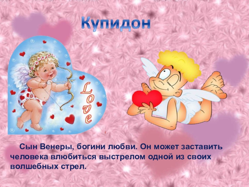 Слайд 14 Сын Венеры, богини любви. Он может заставить человека влюбиться