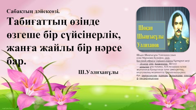 Шоқан Шыңғысұлы Уәлиханов (шын есімі Мұхаммед Қанафия; 1835,