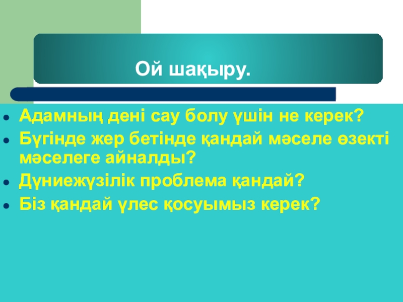 Ой шақыру.Адамның дені сау болу үшін не керек?Бүгінде