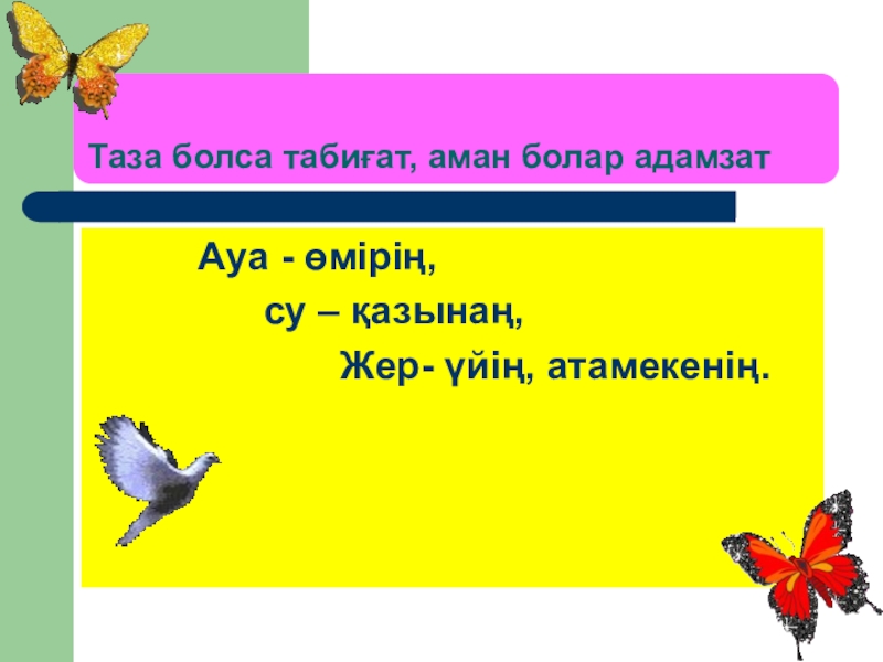 Слайд 1Таза болса табиғат-аман болар адамзат