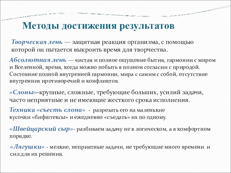 «Слоны»-крупные, сложные, требующие больших, усилий задачи, часто неприятные и не имеющие жесткого срока исполнения.