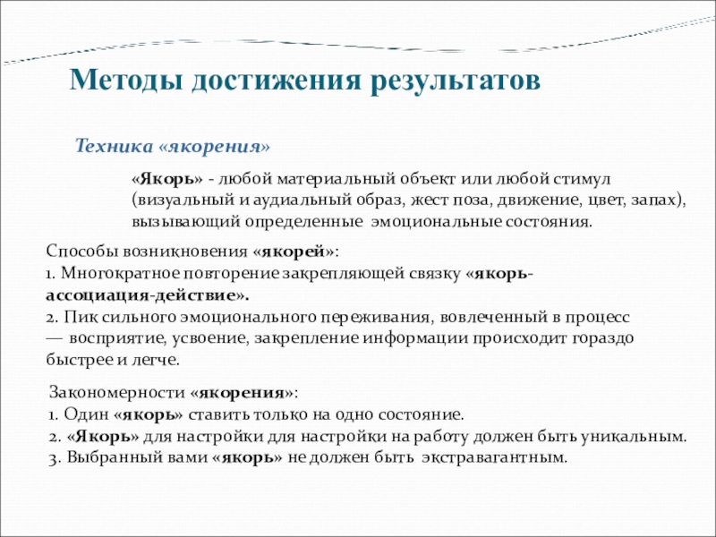 1. Многократное повторение закрепляющей связку «якорь- ассоциация-действие».