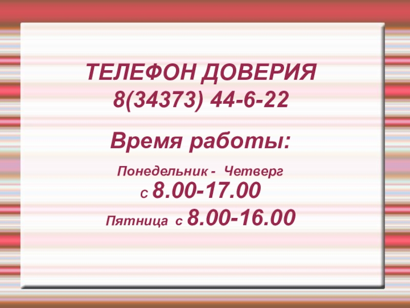 Информирование о работе телефона доверия для педагогов и родителей о возможностях оказания экстренной спихологической помощи.