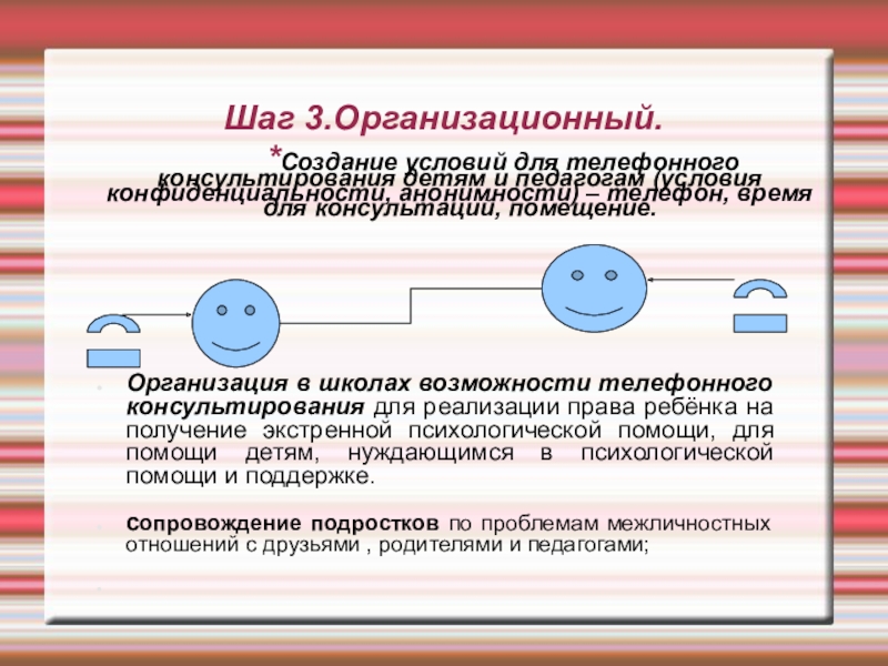 Организация в школах возможности телефонного консультирования для реализации права ребёнка на получение экстренной психологической помощи, для помощи детям, нуждающимся в психологической помощи и поддержке.