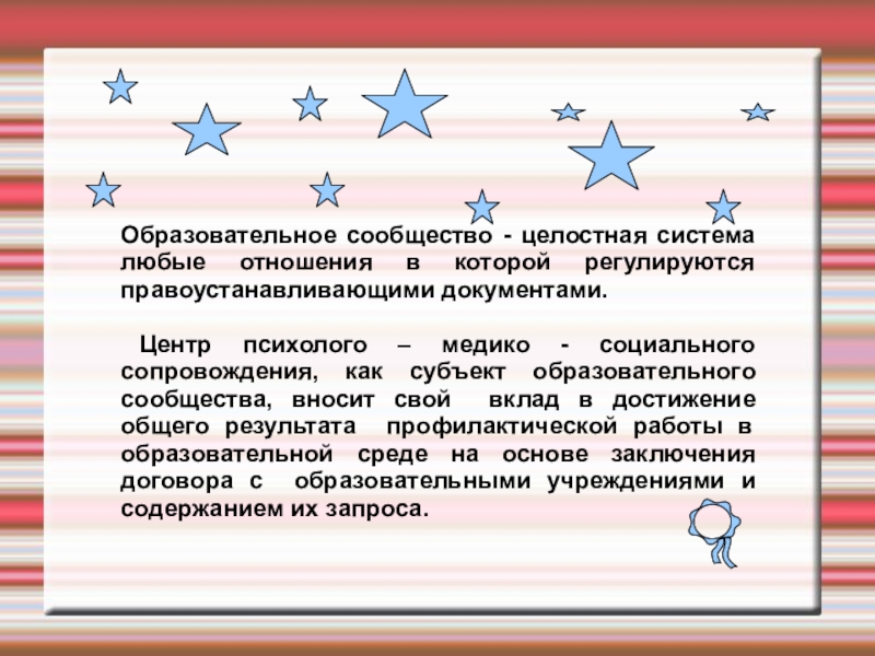 Это сайт презентаций, где можно хранить и обмениваться своими презентациями, докладами, проектами, шаблонами в формате PowerPoint с другими пользователями. Мы помогаем школьникам, студентам, учителям, преподавателям хранить и обмениваться учебными материалами.