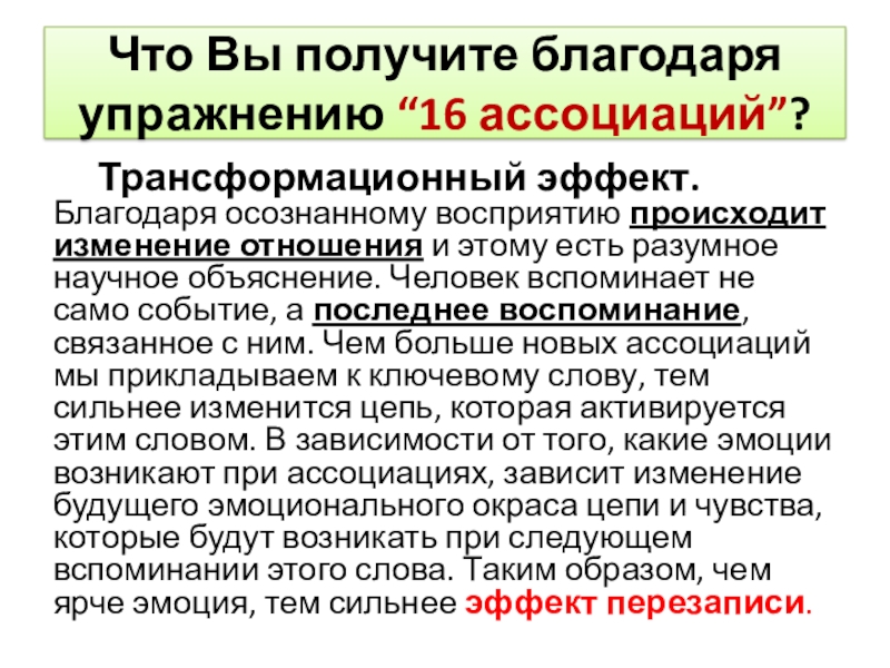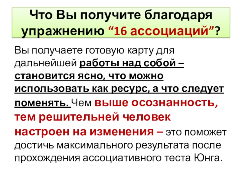 Слайд 8Что Вы получите благодаря упражнению “16 ассоциаций”?
