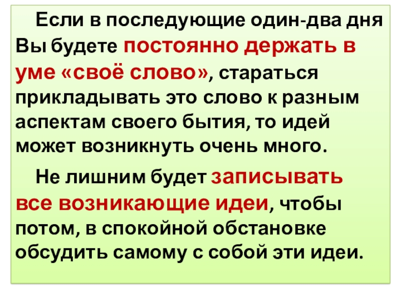 Слайд 24 Если в последующие один-два дня Вы будете постоянно держать в уме