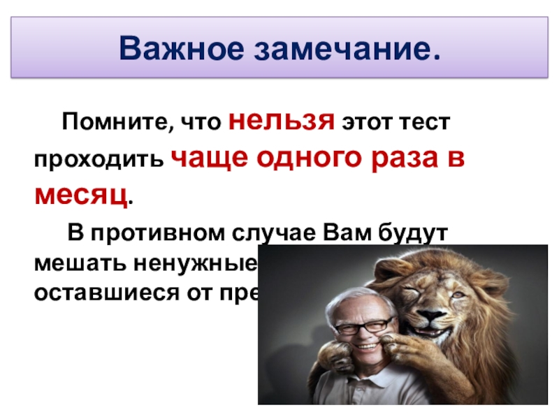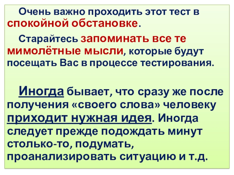 Слайд 23 Очень важно проходить этот тест в спокойной обстановке.