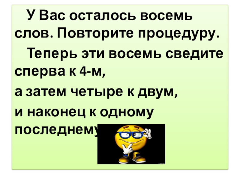 Слайд 19 У Вас осталось восемь слов. Повторите процедуру.
