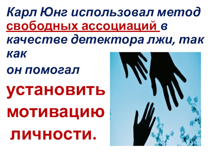 Слайд 2Карл Юнг использовал метод свободных ассоциаций в качестве детектора лжи, так