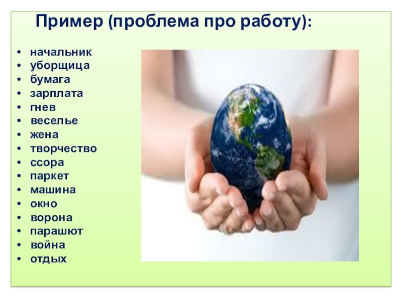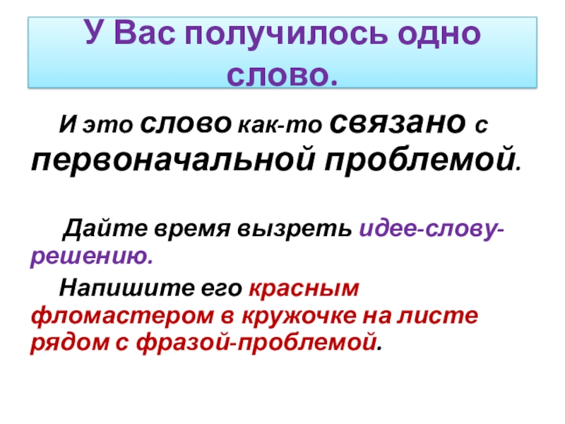 Подумайте, с каким словом Вы хотели бы поработать (проблема).
