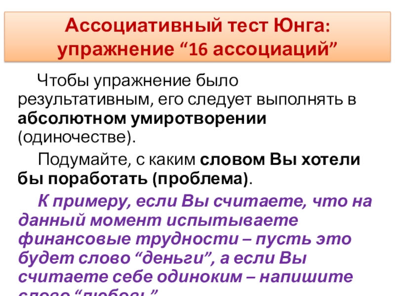 Упражнение “16 ассоциаций” действует подобно ассоциативному тесту Юнга,