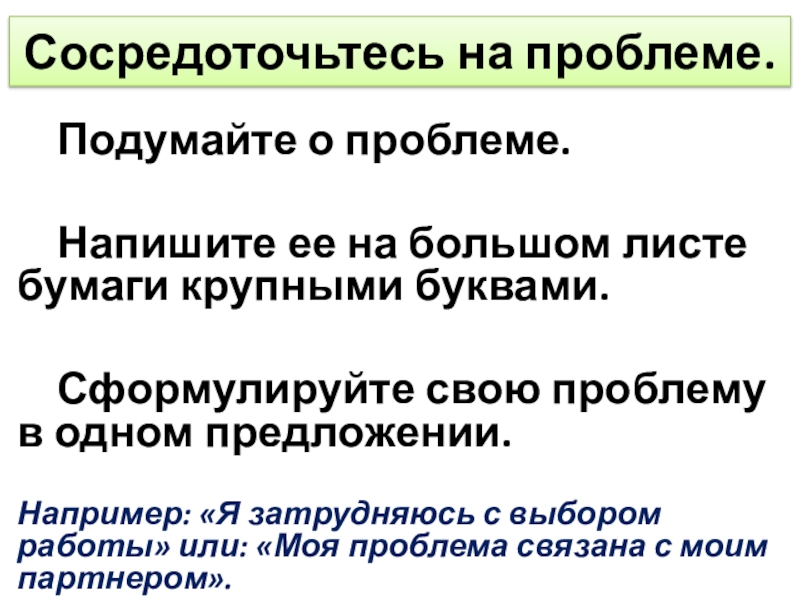Например: «Я затрудняюсь с выбором работы» или: «Моя проблема связана с моим партнером».