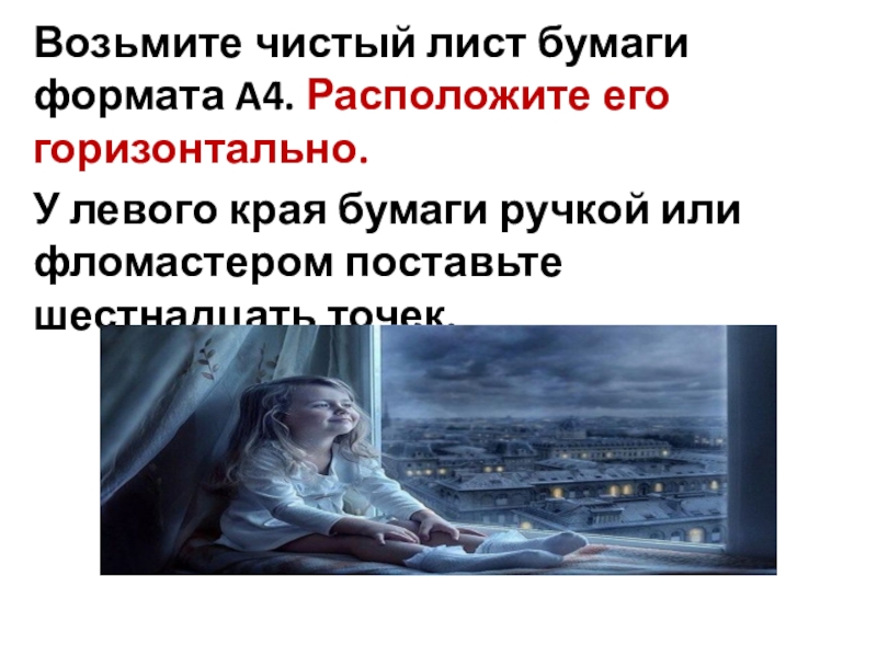 Слайд 13Возьмите чистый лист бумаги формата A4. Расположите его горизонтально.