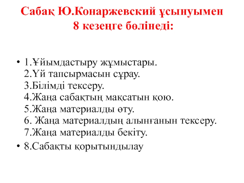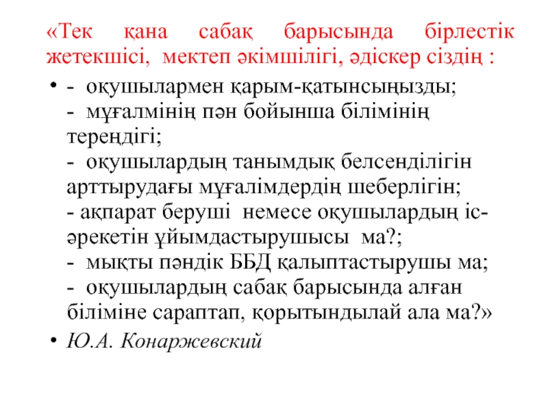 Слайд 25Сабақ Ю.Конаржевский ұсынуымен
