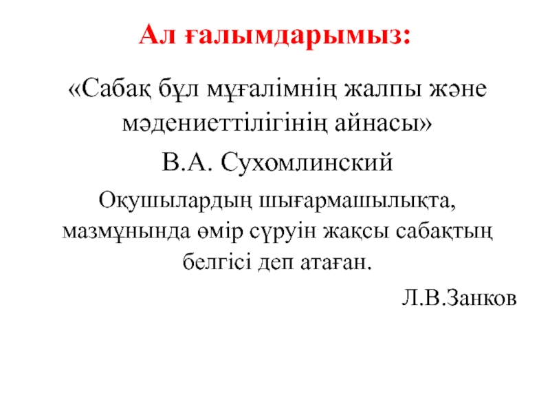 «Сабақ бұл мұғалімнің жалпы және мәдениеттілігінің айнасы»