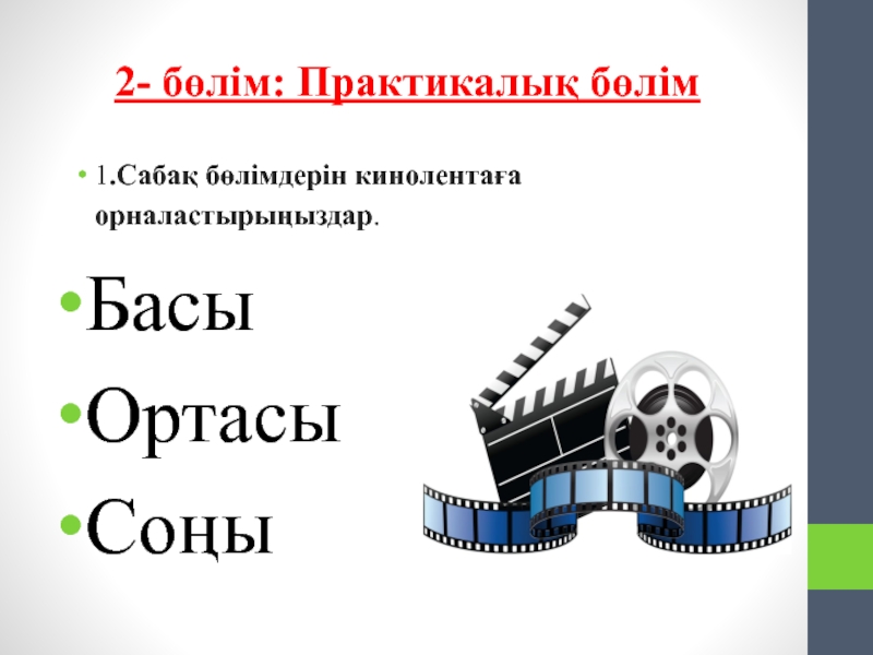 1.Сабақ бөлімдерін кинолентаға орналастырыңыздар.