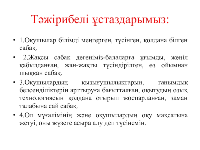 ұғымды, жеңіл қабылданған, жан-жақты түсіндірілген, өз ойымнан шыққан сабақ.