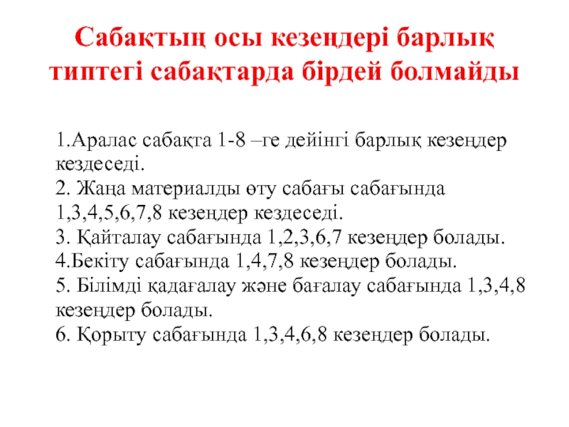 Слайд 26Сабақтың осы кезеңдері барлық типтегі сабақтарда бірдей болмайды