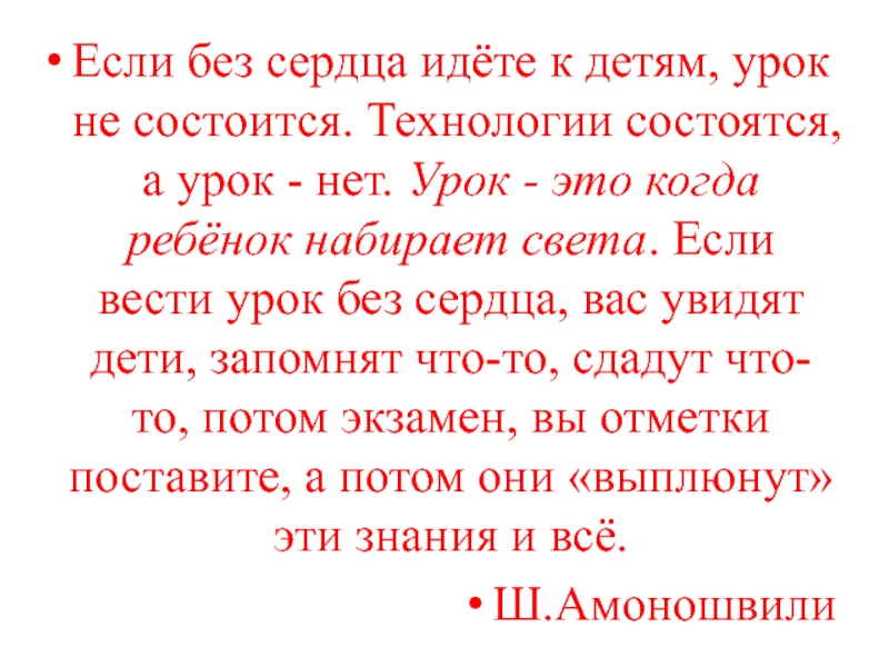 Слайд 17Если без сердца идёте к детям, урок не состоится. Технологии состоятся,